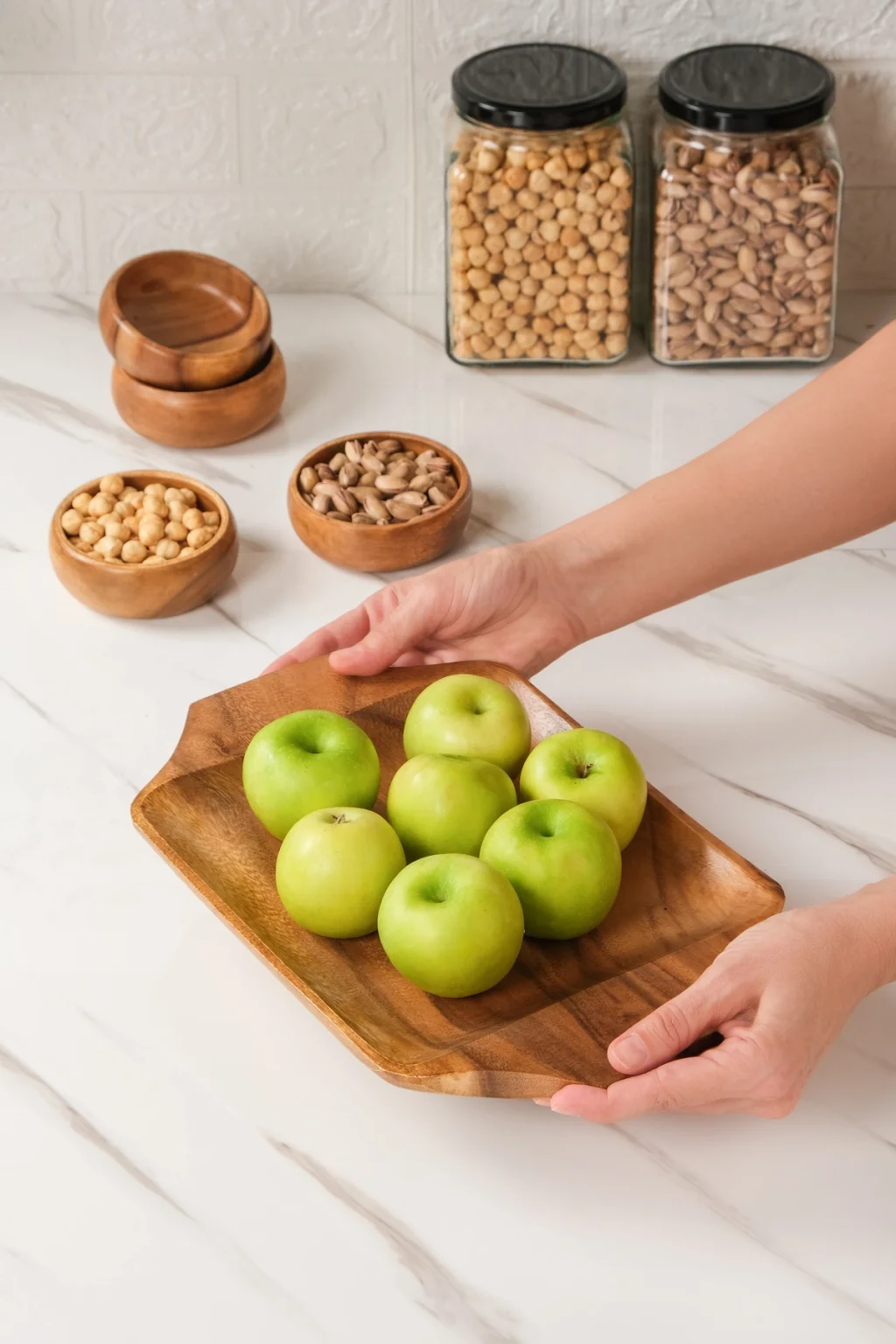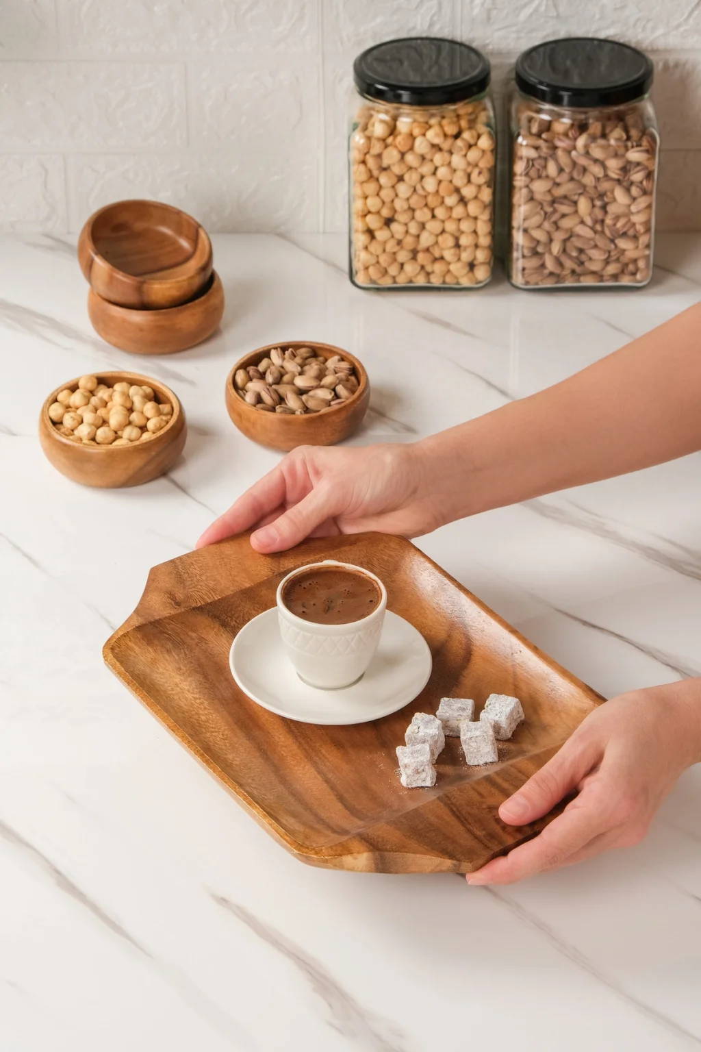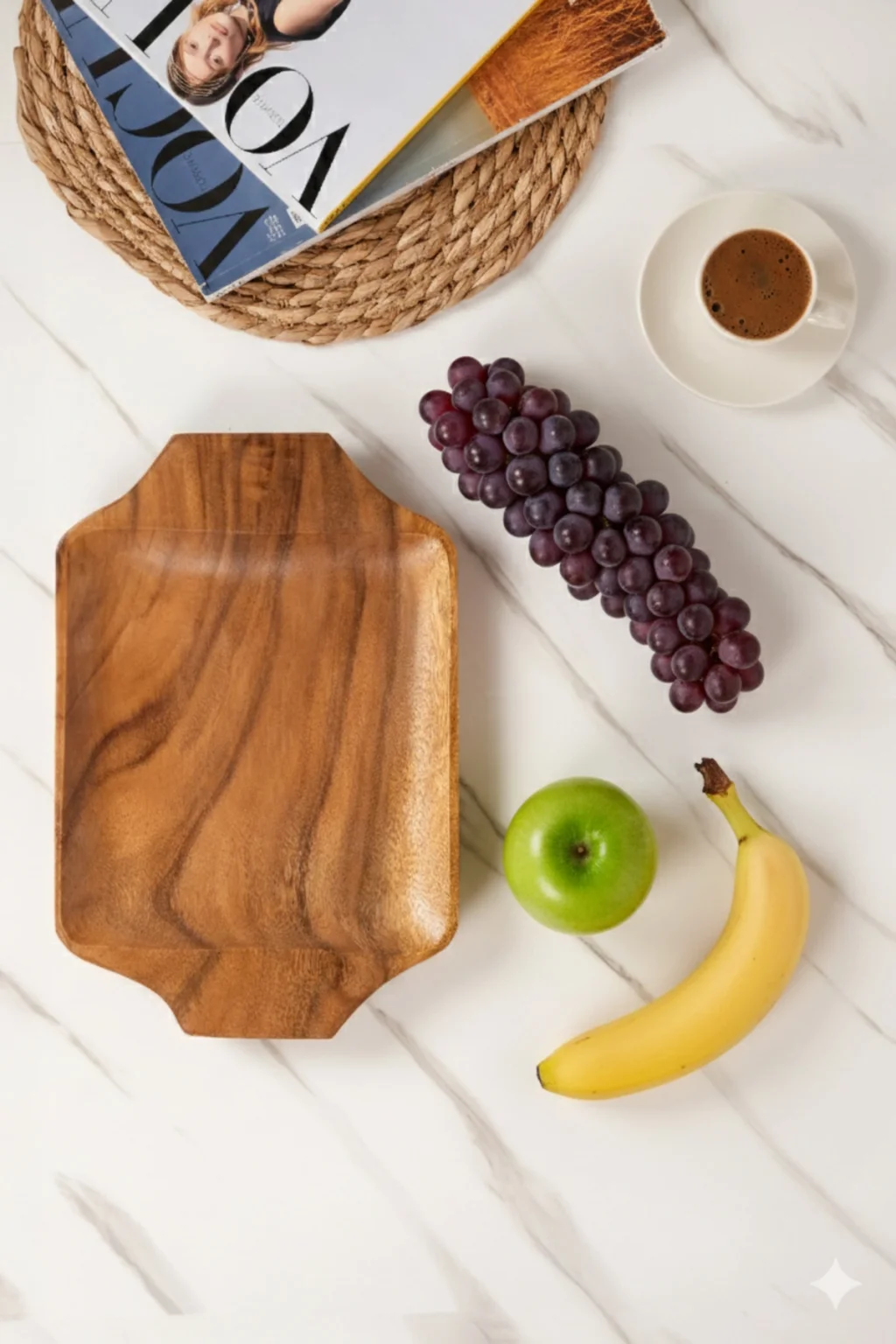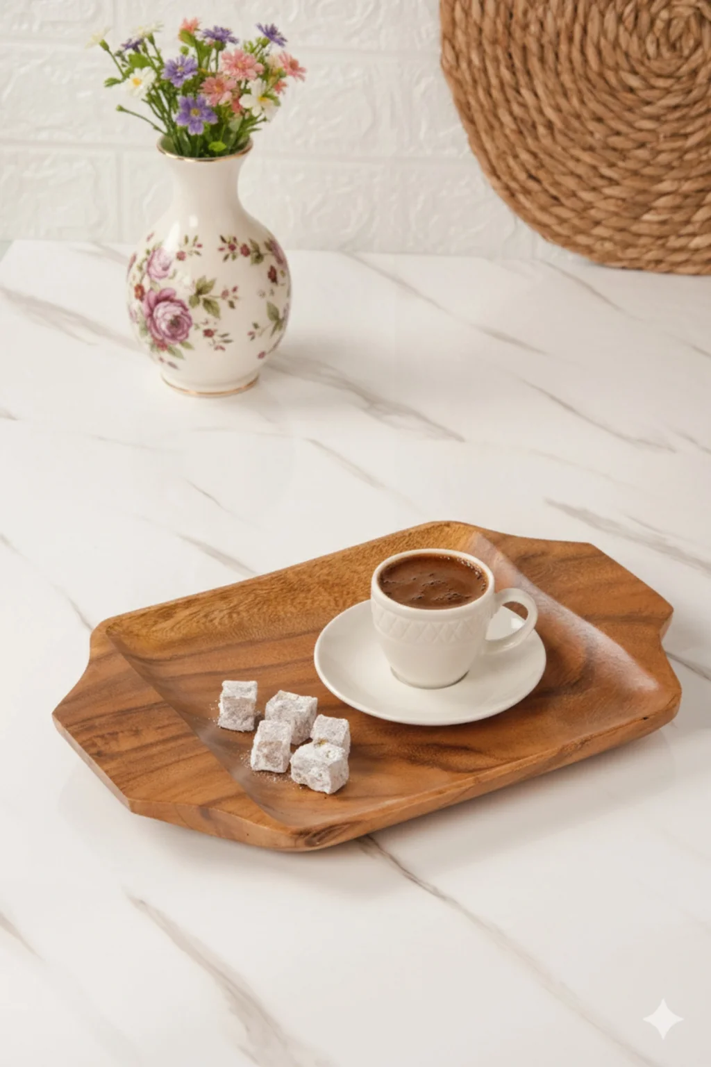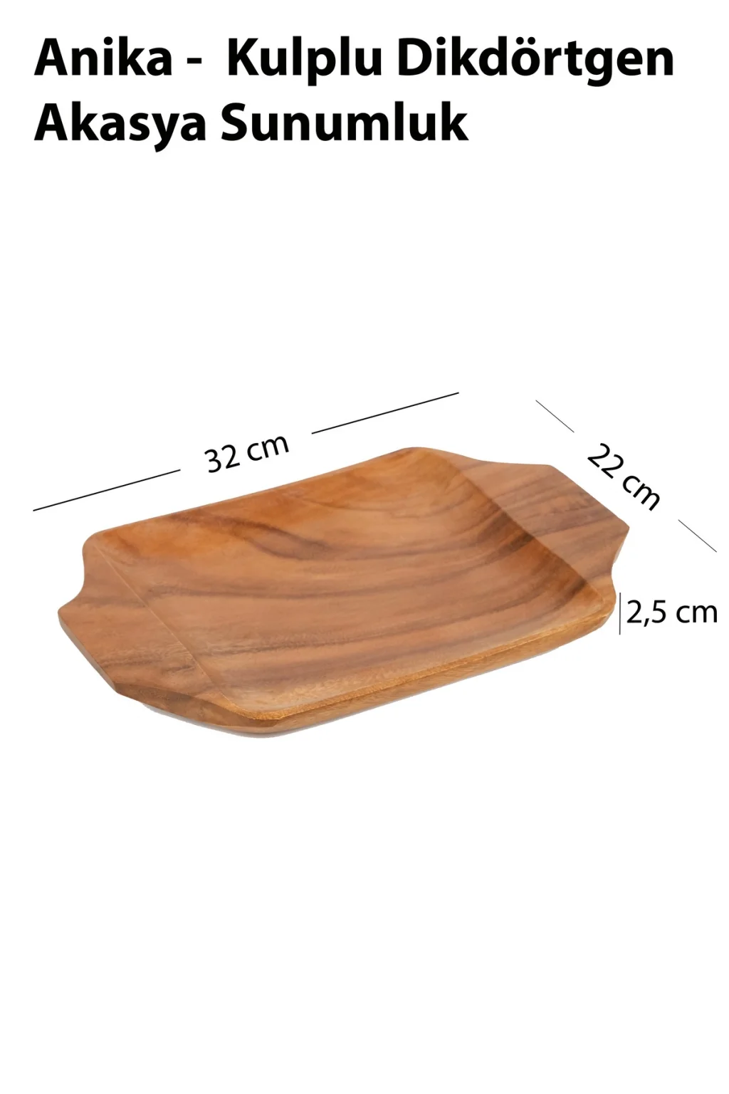 İkram ve sunumlarınıza Akasya ağacının şıklığı doğallığı ayrı bir hava katacaktır.; ; Birinci sınıf % 100 doğal akasya ağacından el işçiliği ile özenle üretilmiştir.; ; Gıda temasında herhangi bir hijyen sorunu barındırmadığından dolayı sunumlarınızda güvenle kullanabilirsiniz.; ; Uzun süreli kullanım için yumuşak bir sünger yardımıyla elde yıkanması tavsiye edilir.; ; Paket İçeriği: 1 Adet Akasya Tepsi ; Materyal: %100 Doğal Akasya Ağacı ; Ebatlar: Tepsi: 32 x 22 x 2,5 cm ; Koşulları: Ürünlerinizin tarafınıza ulaştığı şekilde patpata sarılı, kutulu ve ambalajı bozulmamış olarak edilmesi gerekmektedir.; Aksi halde gönderilen iadeler kabul edilemeyecektir.
