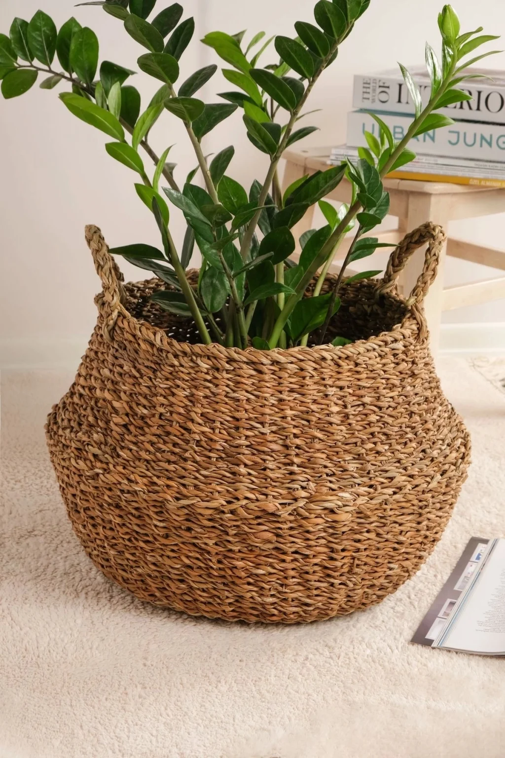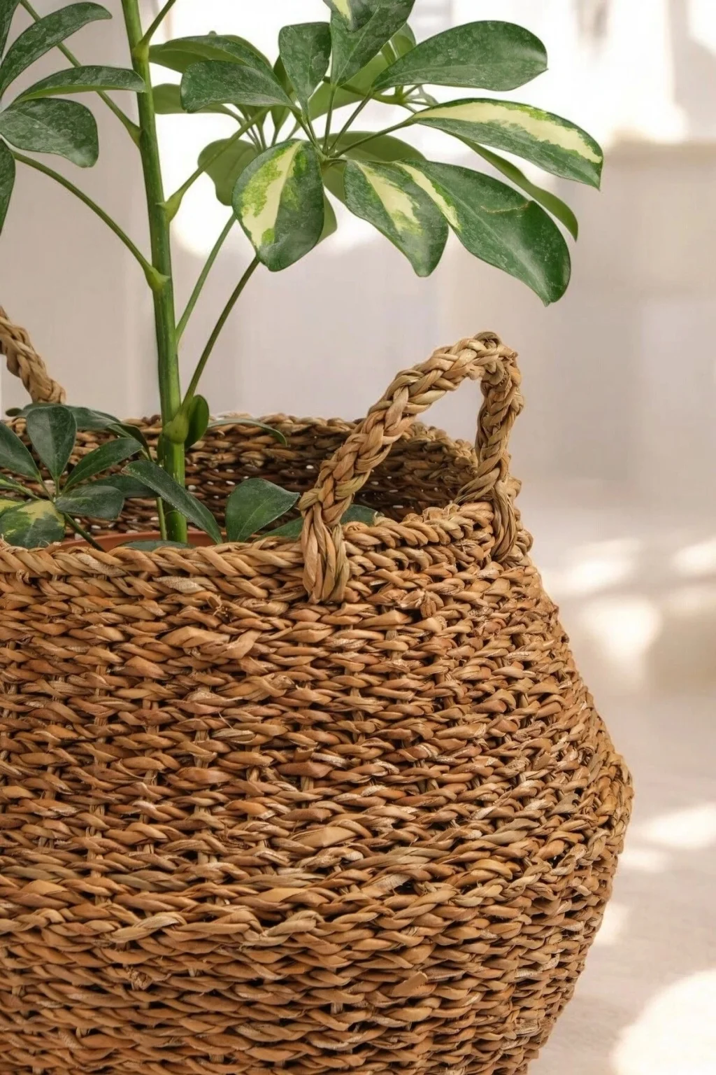 Alizee - Büyük Boy Dekoratif Katlanabilir Hasır Sepet Saksılık