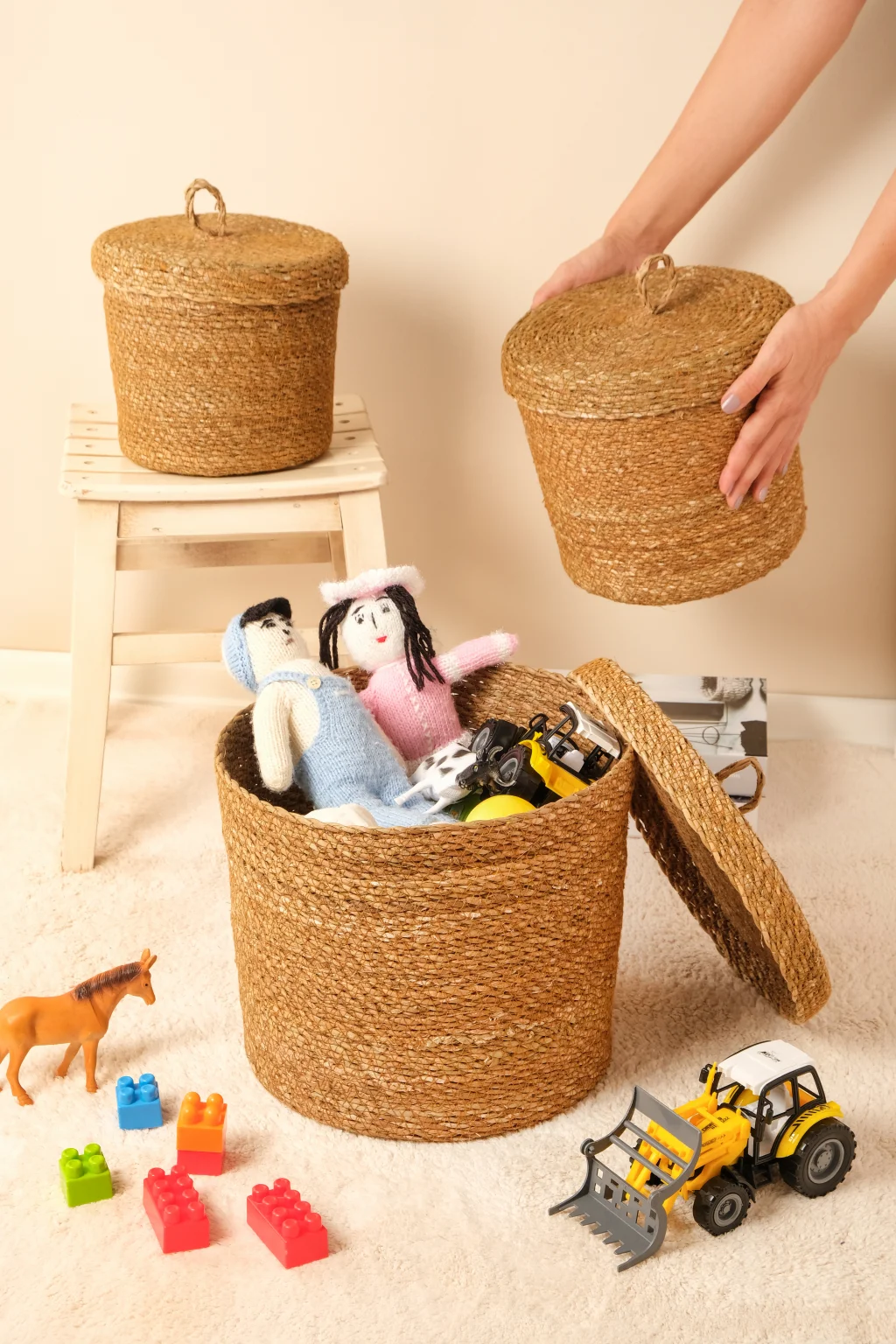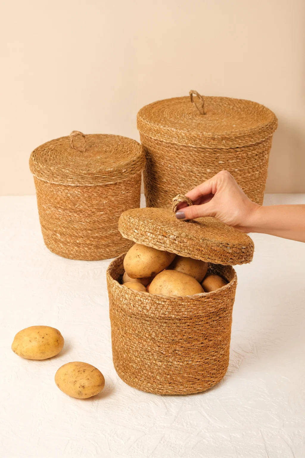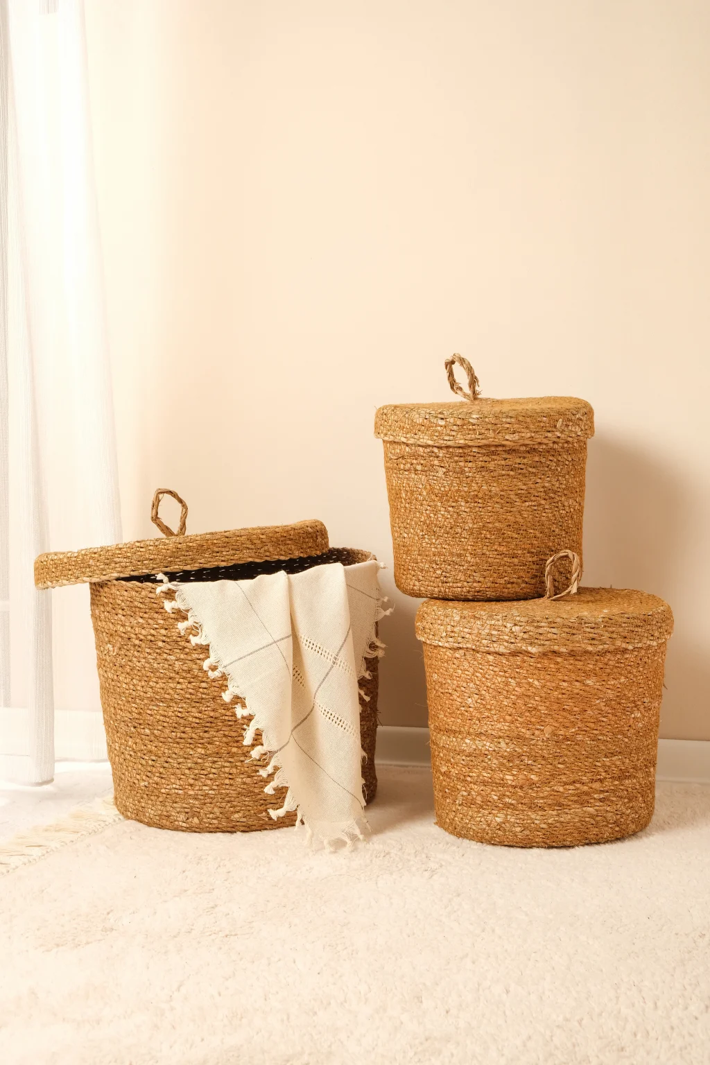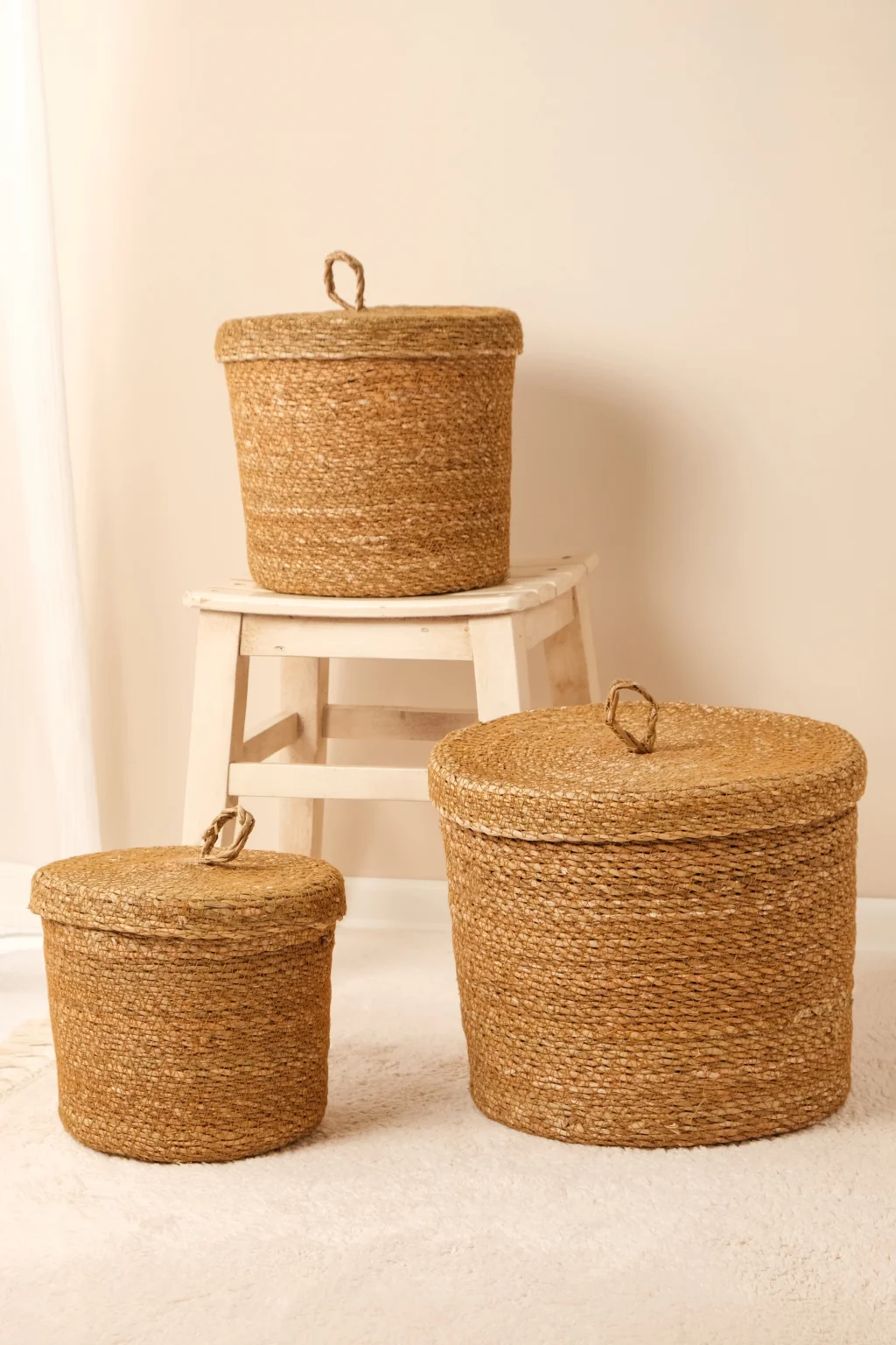 Arleen - 3'lü Dekoratif El Örmesi Kapaklı Hasır Sepet Seti, Organizer, Düzenleyici, Saklama Kutusu ; Doğal Hasır Örme Hasır Kapaklı Kutu Sepet Seti. ; Şık Tasarımı İle Evinizin Her Köşesinde Kullanıma Hazır. ; %100 Doğal Hasırdan Üretilmiştir. ; Çok Amaçlı Düzenleyici olarak kullanabilirsiniz tercihinize göre (Organizer, Düzenleyici, Saklama Kutusu, Çeyiz Kutusu v.b.) ; Materyal: Doğal Örme Hasır ; Ebatlar: ; Büyük Çapı: 30 cm Yükseklik: 26 cm Hacim: 15 lt ; Orta Çapı: 25 cm Yükseklik: 23 cm Hacim: 10 lt ; Küçük Çapı: 22 cm Yükseklik: 19 cm Hacim: 6 lt ; İade Koşulları:Ürünlerinizin tarafınıza ulaştığı şekilde patpata sarılı, kutulu ve ambalajı bozulmamış olarak iade edilmesi gerekmektedir. Aksi halde gönderilen iadeler kabul edilemeyecektir. ;