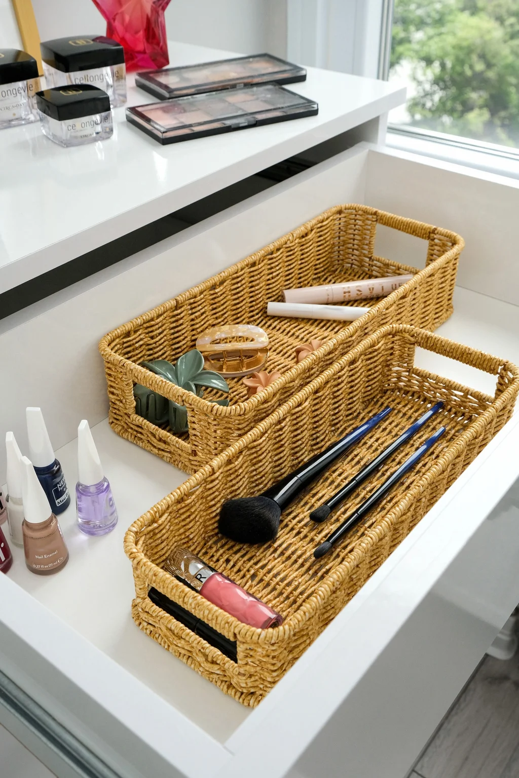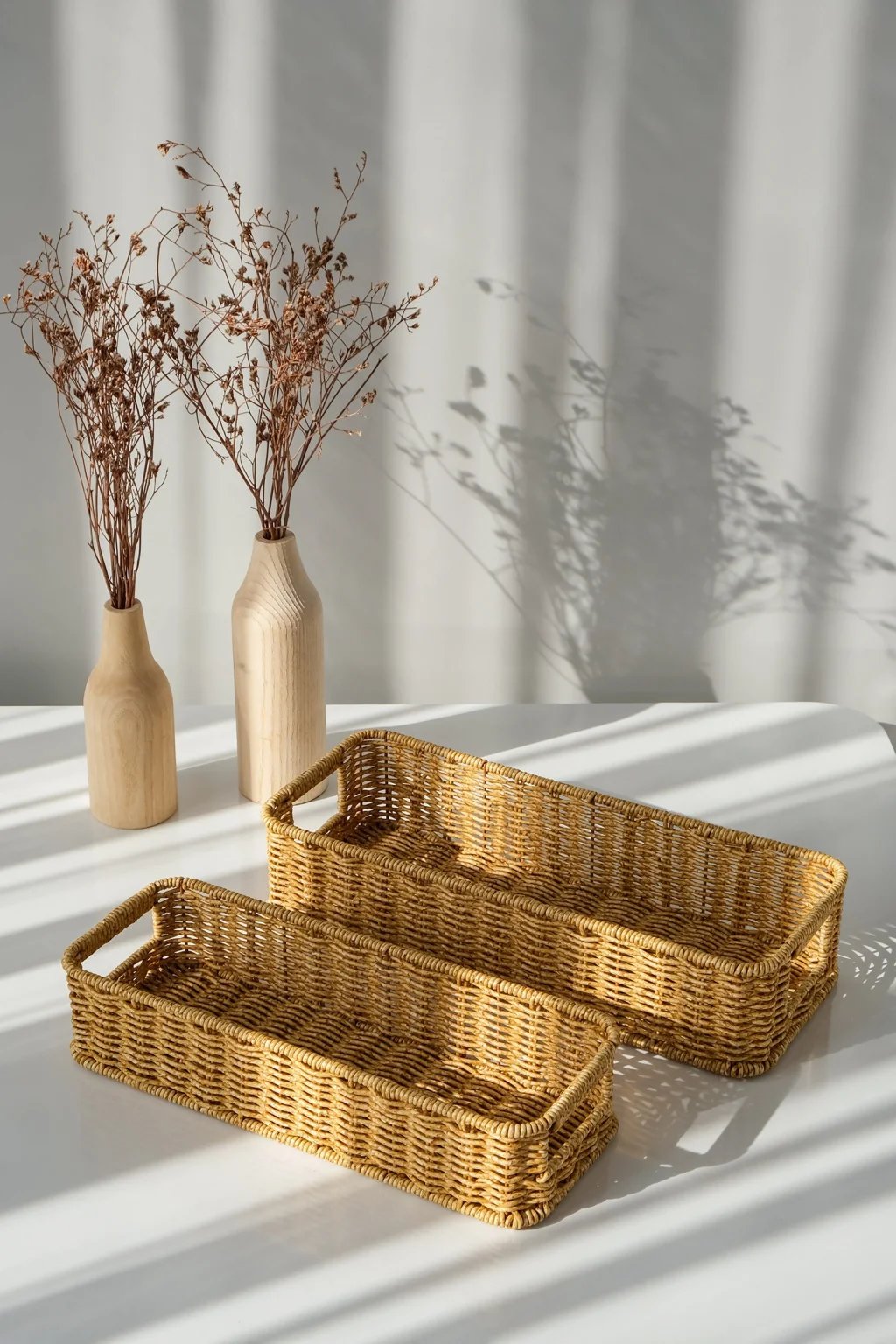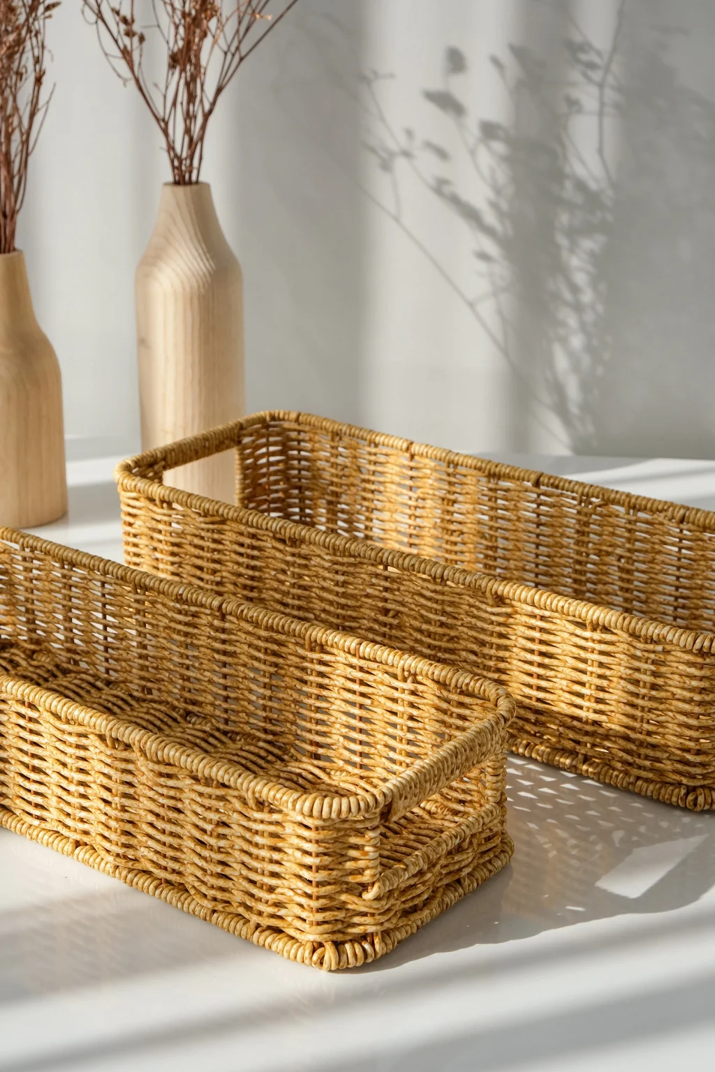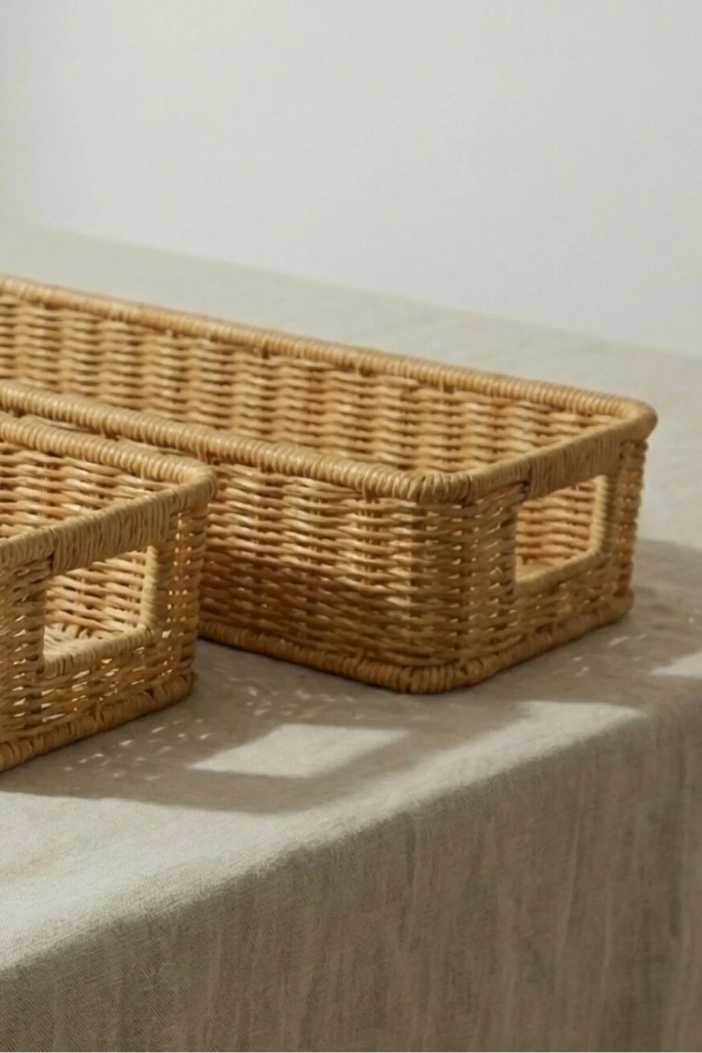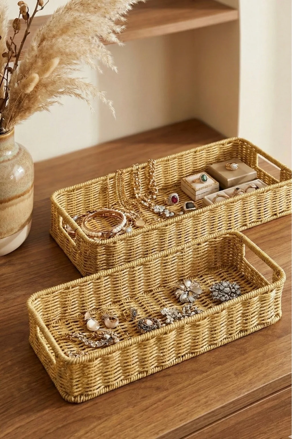 Gigi- 2 li Rattan Saklama Kutusu,Düzenleyici, Organizer, Takı Kutusu Seti ; Modern görünümüyle dekoratif olmasının yanı sıra, makyaj malzemelerinden ofis kırtasiye ürünlerine kadar geniş yelpazede ürünleri saklayabilmek için kullanılabilir.; ; Ev ve ofiste, düzenli alan oluşturmanıza yardımcı olurken, aynı zamanda hasır görünümlü yapısıyla bulunduğu ortama şıklık katar.; ; Küçük eşyalarınız için pratik bir kullanım sağlar ve mükemmel bir saklama çözümüdür.; ; Peket İçeriği: 2 Bot Rattan Organizer ; Materyal : Rattan Plastik ; Ebatlar ; Büyük ; En: 36 cm , Boy: 15 cm, Yükseklik: 8 cm ; Küçük ; En: 32 cm , Boy: 13 cm, Yükseklik: 7 cm ; Koşulları: Ürünlerinizin tarafınıza ulaştığı şekilde patpata sarılı, kutulu ve ambalajı bozulmamış olarak edilmesi gerekmektedir.; Aksi halde gönderilen iadeler kabul edilemeyecektir.;