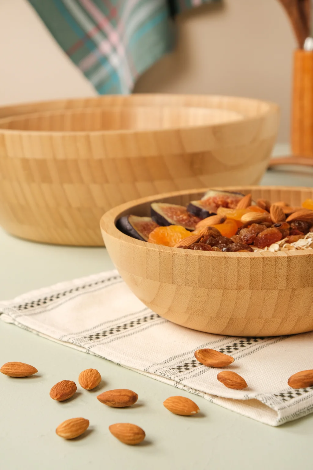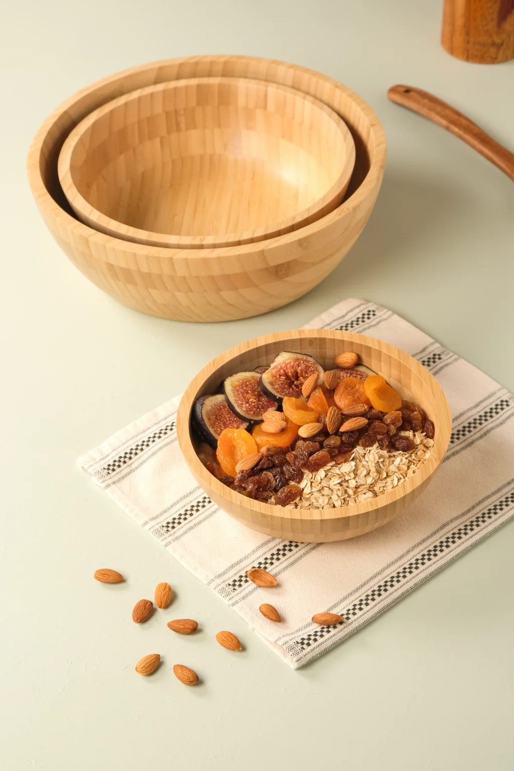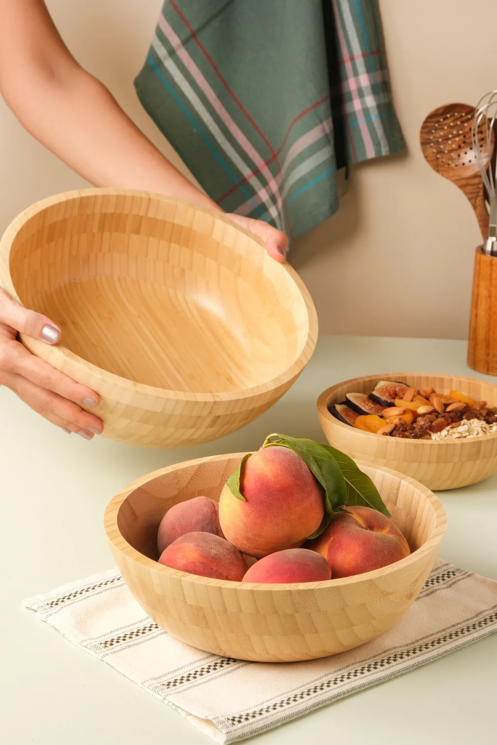Mia - 3 lü Bambu İkeanatural Salata Kasesi, Sunum Kasesi, Dekoratif Kase, İskandinav Kase