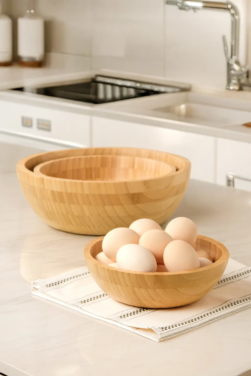 • Paket İçeriği: 3 Boy Bambu Salata Kasesi